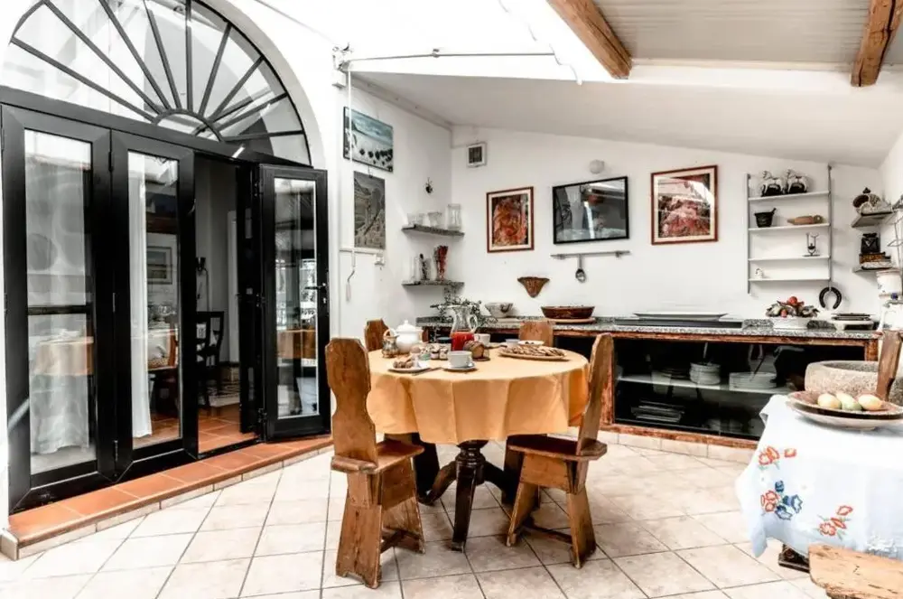 Altid tilgængelige offentlige parkeringspladser (privat garage tilgængelig, men ikke brugt), indbydende, delvist overdækket gårdhave, rummelige badeværelser, anstændig internetforbindelse også velegnet til streaming - lidt svagere i gården, men stadig tilgængelig, over gennemsnittet udstyret køkken, meget hjælpsom, altid tilgængelig værtinde